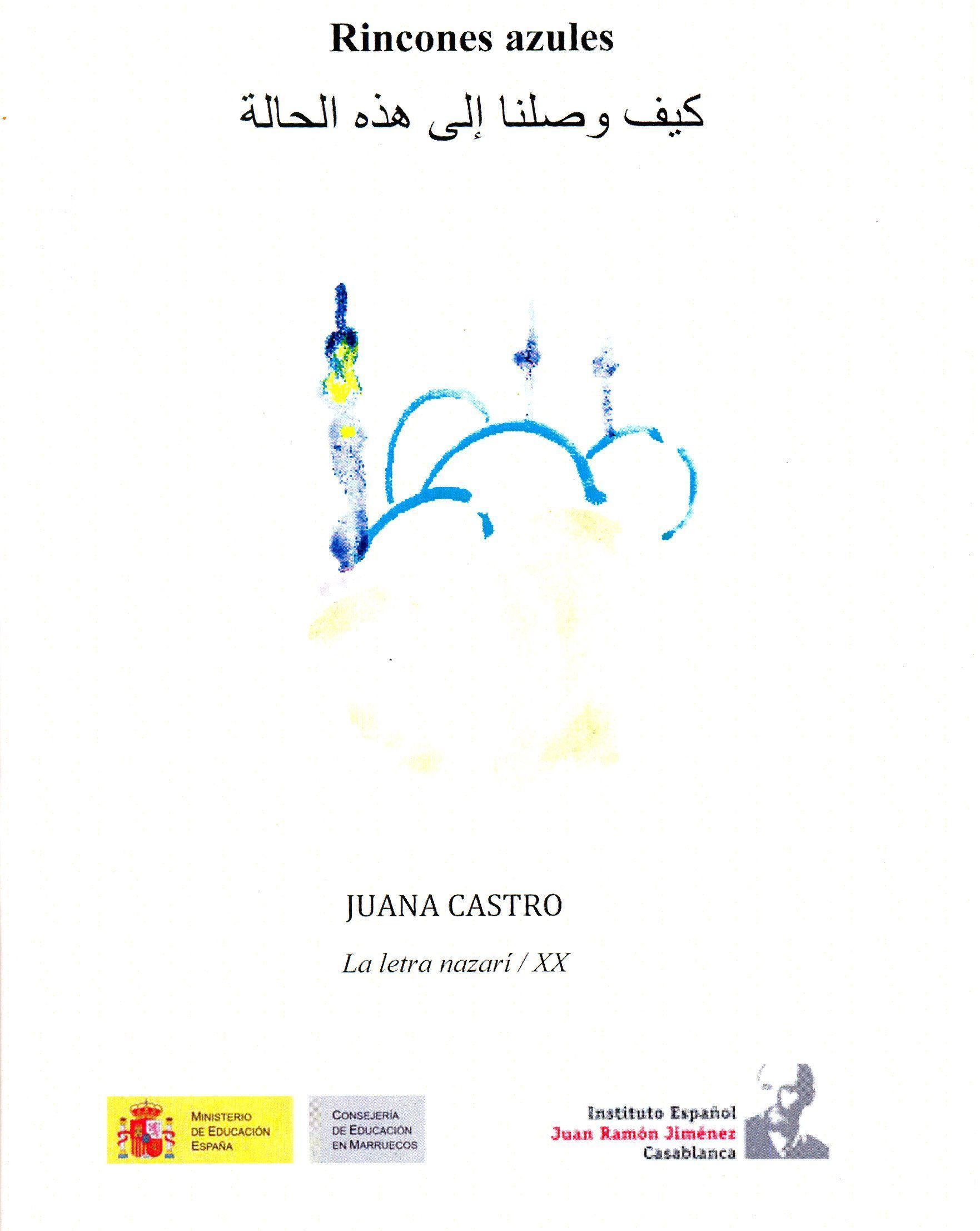 Rincones azules , bilingüe castellano-árabe, Col. La letra nazarí nº XX, Instituto Juan Ramón Jiménez, Casablanca 2011. -